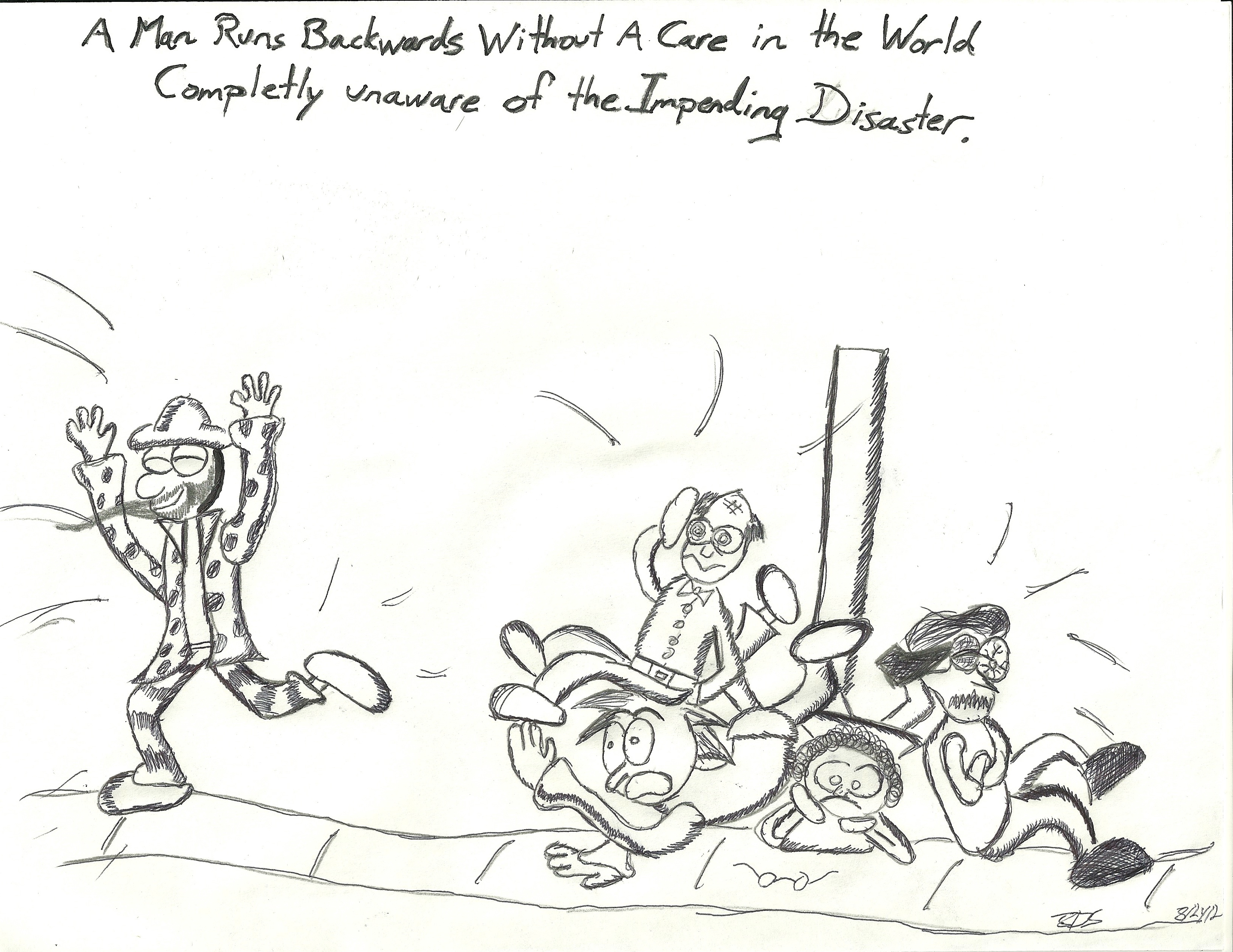 The final theory to explain Running Backwards is less of an honest attempt to explain a new phenomenon, and more a review of social attitudes. Everyone says people are becoming more and more lazy as the years go on. In their minds, Running Backwards is a demonstration of this laziness. Running Backwards is not an extreme sport of a horrible disorder. It is the world’s most half-assed escape plan. What requires less thought than thinking, “If I need to leave, I will go out the way I came in…Exactly the way I came in.” People who choose this method of escape cannot even be bothered to change directions. That would simply be too much work. Of course, there are problems with this theory as well. If a person is too lazy to turn around when they are leaving, chances are they are too lazy to go anywhere in the first place.